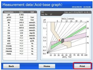 دستگاه بلادگاز تکنومدیکا ژاپن از معدود دستگاههای گازهای خونی است که این امکان را برای کاربر فراهم میکند تا نقشه اسید-باز گلدبرگ را به ضمیمه نتایج برای پزشک پرینت کند. این امکان از طریق منوی Function>Measurement Data>Search>Acid Base Graph برای کاربران دستگاه فراهم است.
